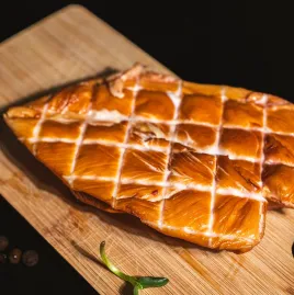 Продукт из мяса говядины высшей категории. Цельномышечная мякоть задней части. С жиром и без жира. Копчено - вареный до температуры готовности 72 С