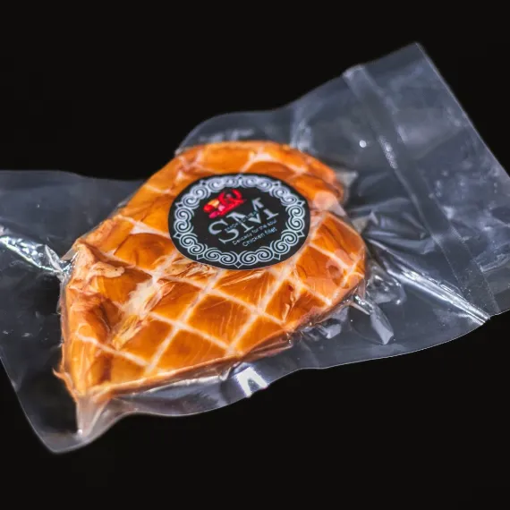 Продукт из мяса курицы высшей категории. Грудинка очищенная. Копчено - вареный до температуры готовности 75 С.